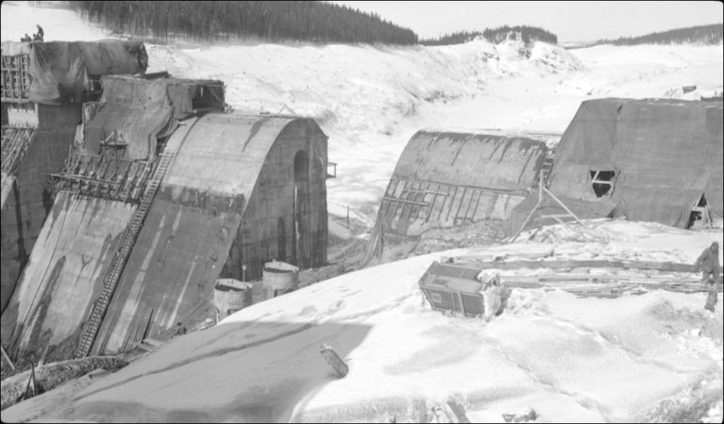 Construction de la passe dangereuse; section du déversoir libre