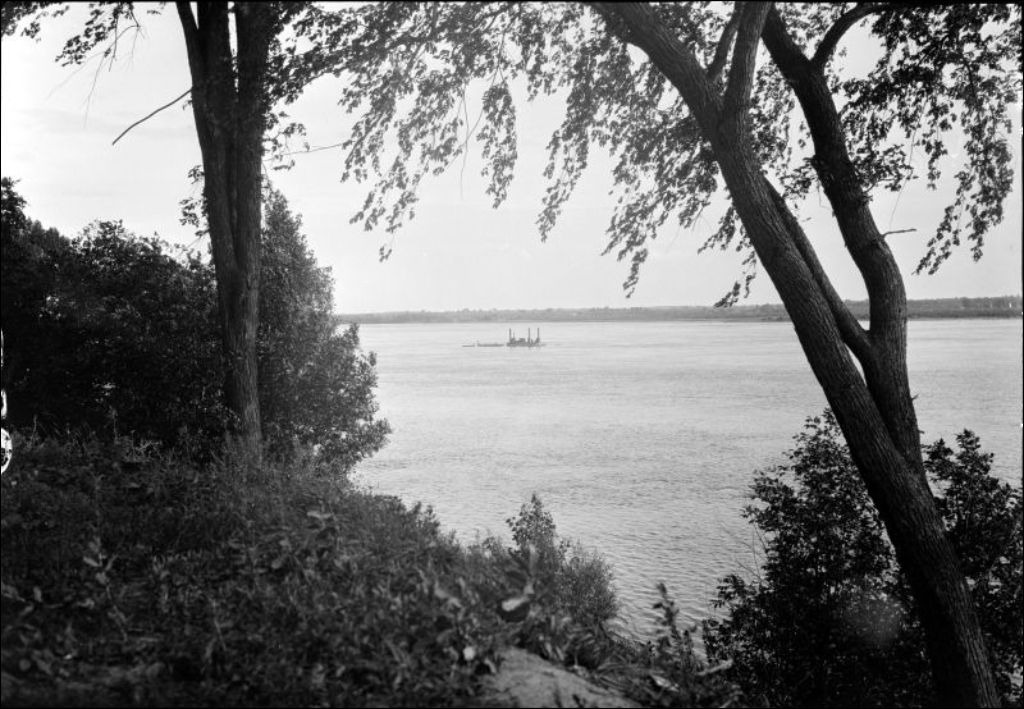 Caughnawaga (Kahnawake); chaland sur le Fleuve Saint-Laurent