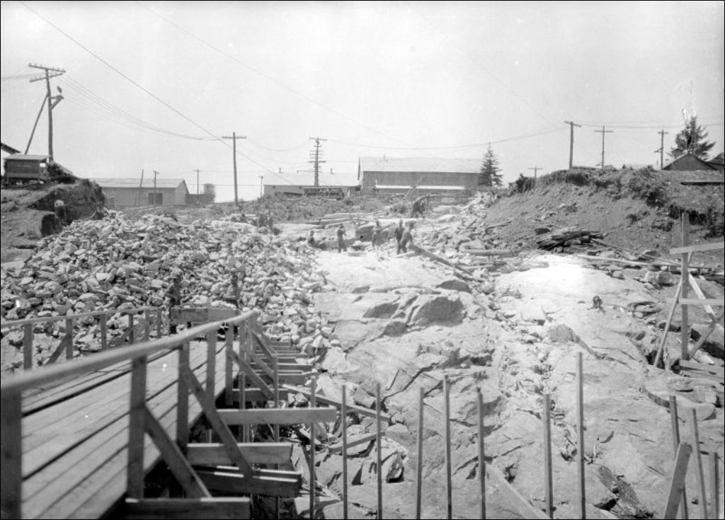 Rivière Gatineau, Baskatong, Réservoir et Bittabee: excavation de roc sur la rive ouest pour les déversoirs