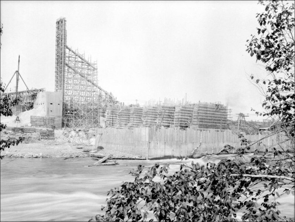 Rivière Gatineau, Baskatong, Réservoir et Bittabee: piliers des déversoirs et tour de distribution du béton, 1926, Archives nationales à Québec, Fonds Ministère de l'Environnement et de la Lutte contre les changements climatiques, (03Q,E57,S44,SS1,D91,PA14-61), Photographe non identifié.