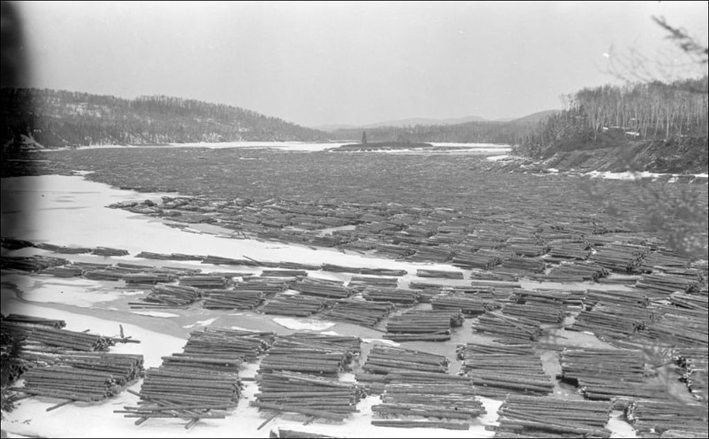 Flottage du bois sur le Haut-Saint-Maurice: bois en amont du rapide Windigo