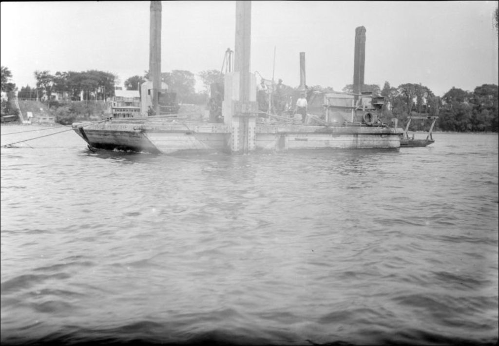Caughnawaga (Kahnawake); chaland sur le fleuve Saint-Laurent
