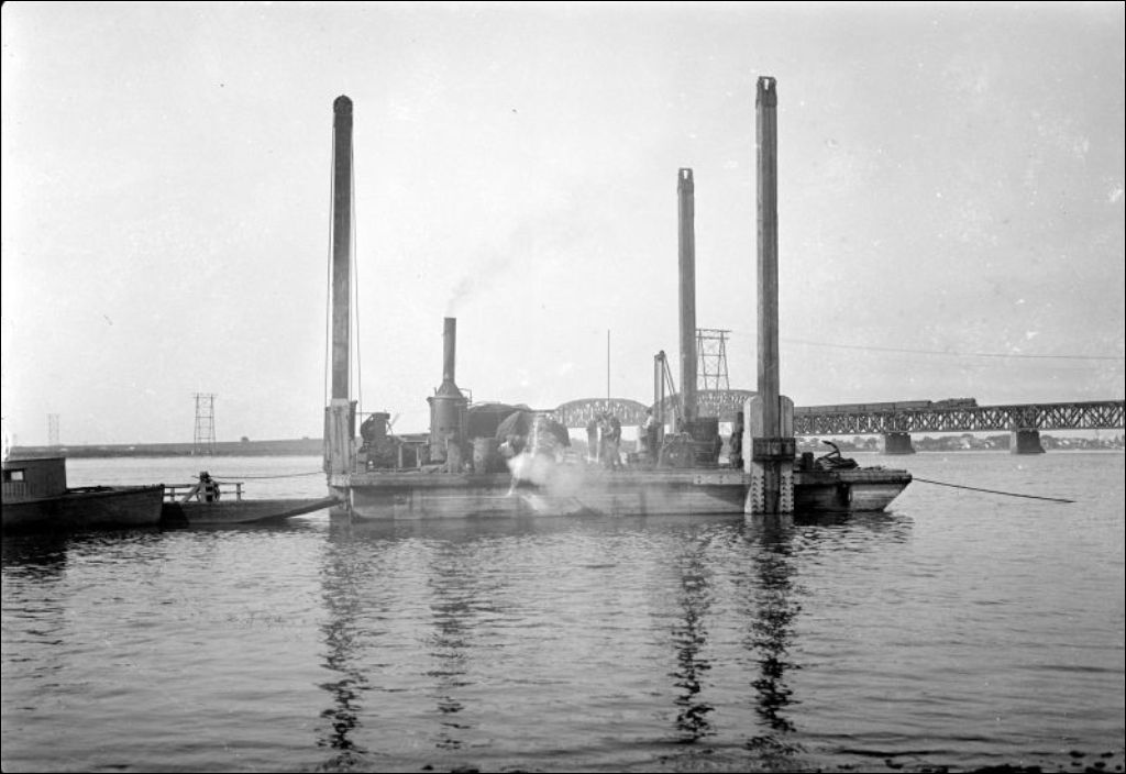 Caughnawaga (Kahnawake); chaland sur le Fleuve Saint-Laurent, 1931, Archives nationales à Québec, Fonds Ministère de l'Environnement et de la Lutte contre les changements climatiques, (03Q,E57,S44,SS1,D90,PA6-85), Photographe non identifié.