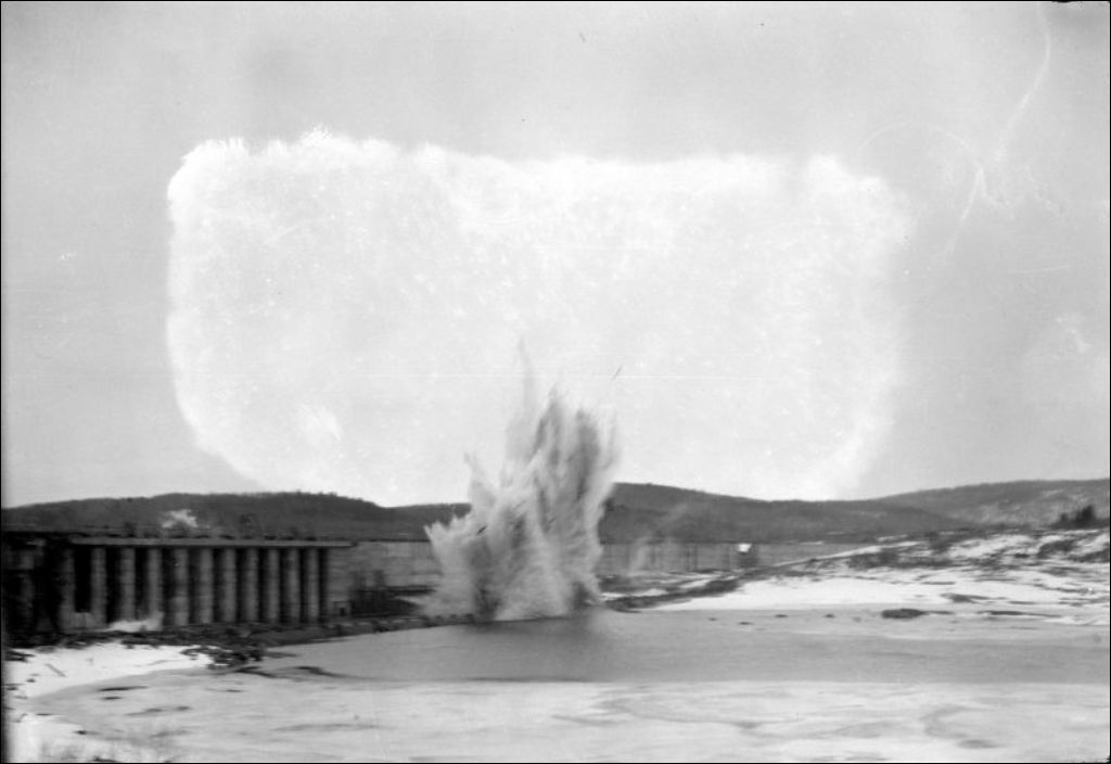 Lac Kénogami, construction des barrages Pibrac et des digues: Barrage Portage-des-Roches, première partie de la vieille écluse dynamitée