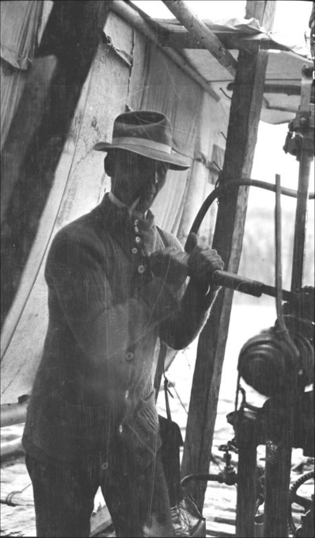 Monsieur O. Lefèbvre et appareil de forage au barrage La Loutre