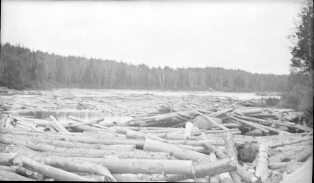 Flottage du bois sur la rivière Manouane, 1931, Archives nationales à Québec, Fonds Ministère de l'Environnement et de la Lutte contre les changements climatiques, (03Q,E57,S44,SS1,D151,PB20-67), Photographe non identifié.