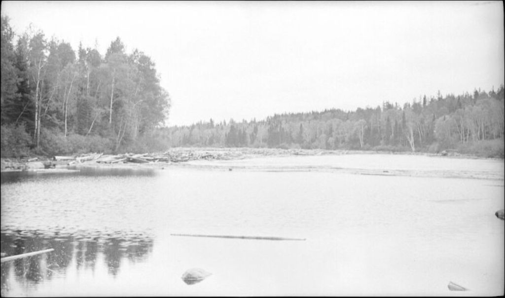 Flottage du bois sur la rivière Manouane, 1931, Archives nationales à Québec, Fonds Ministère de l'Environnement et de la Lutte contre les changements climatiques, (03Q,E57,S44,SS1,D151,PB20-68), Photographe non identifié.