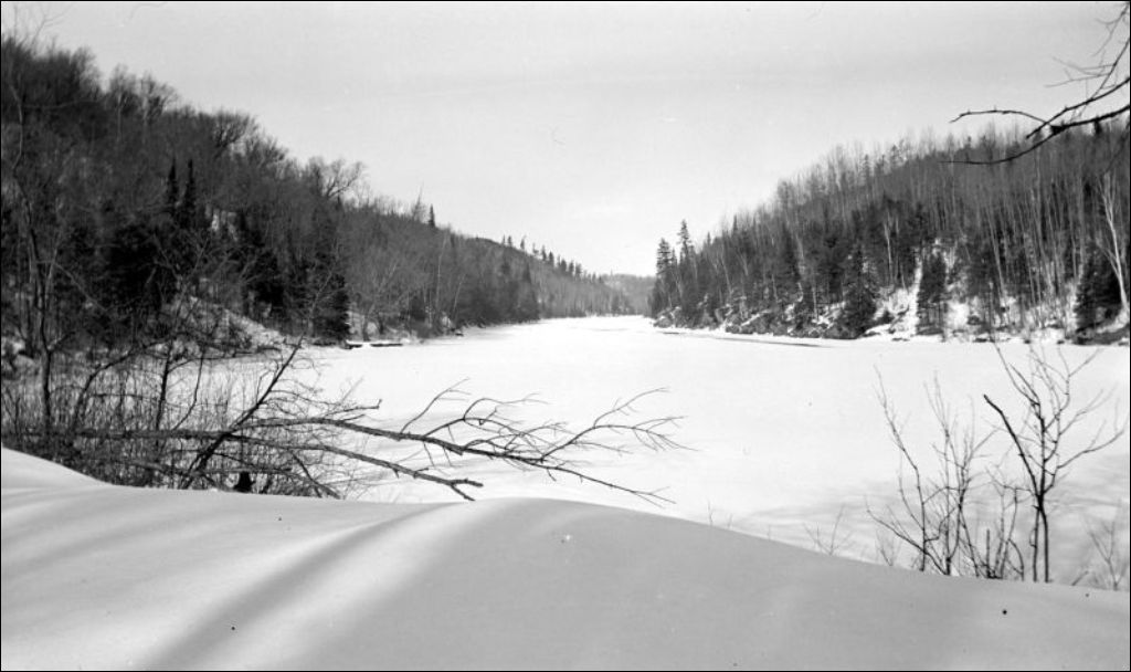 Rivière Noire: glace à la chute Culbute, 1932, Archives nationales à Québec, Fonds Ministère de l'Environnement et de la Lutte contre les changements climatiques, (03Q,E57,S44,SS1,D172,PB22-44), Photographe non identifié.