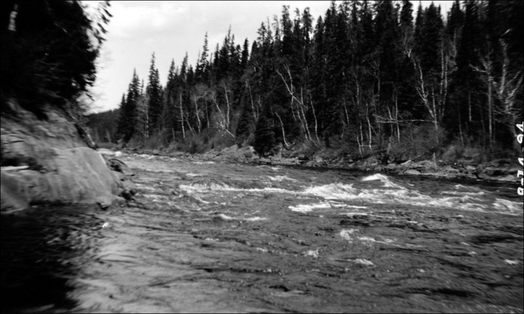 Flottage du bois au rapide Windigo sur la rivière Saint-Maurice, 1932, Archives nationales à Québec, Fonds Ministère de l'Environnement et de la Lutte contre les changements climatiques, (03Q,E57,S44,SS1,D76,PB24-94), Photographe non identifié.