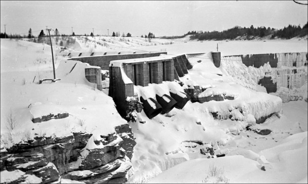 Rivière Sainte-Anne-de-la-Pérade: barrage à Saint-Alban, 1933, Archives nationales à Québec, Fonds Ministère de l'Environnement et de la Lutte contre les changements climatiques, (03Q,E57,S44,SS1,D194,PB26-60), Photographe non identifié.