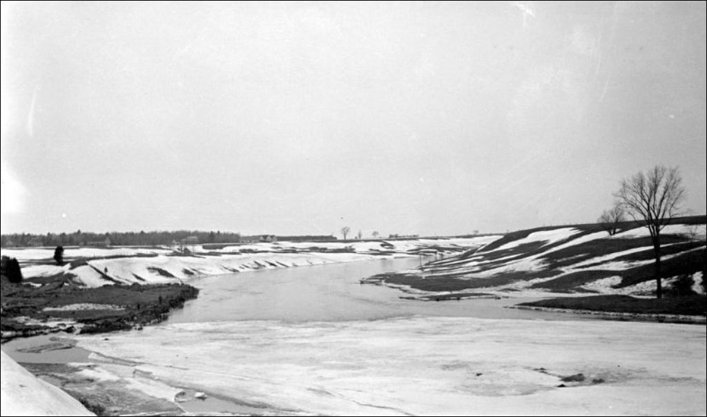 Déblaiement de le la rive ouest en partie submergée de la rivière Nicolet
