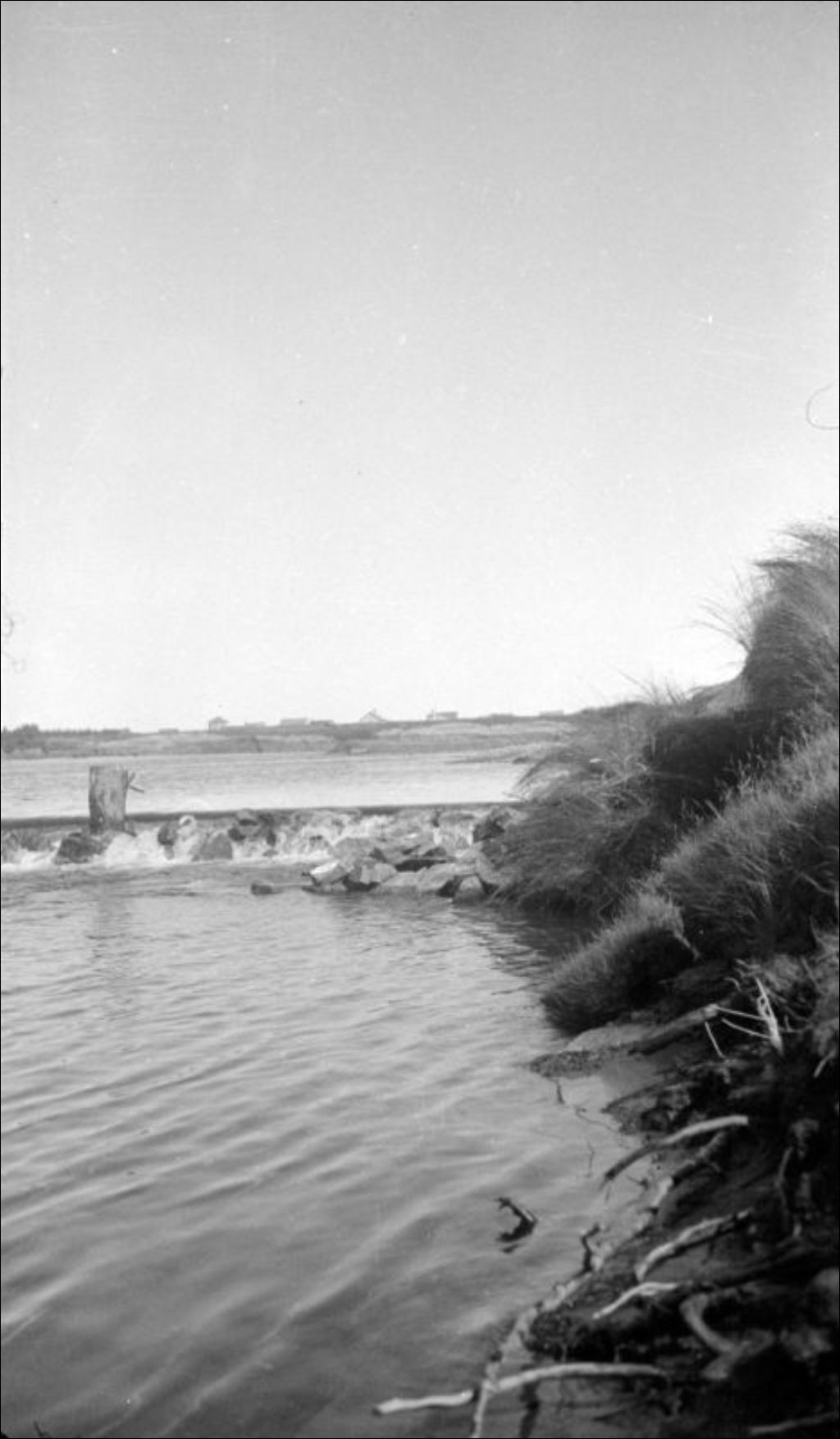Rivière Cap-Chat: digue temporaire, 1934, Archives nationales à Québec, Fonds Ministère de l'Environnement et de la Lutte contre les changements climatiques, (03Q,E57,S44,SS1,D214,PB33-88), Photographe non identifié.