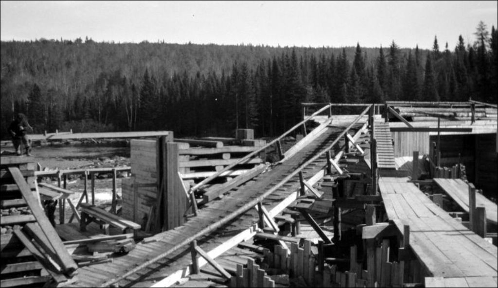 Rivière Manouane - Barrage B: passerelle pour descendre le bois