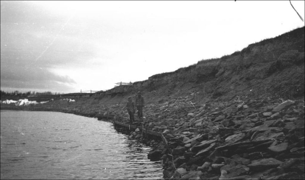 Rivière Cap-Chat: travaux de protection, 1936, Archives nationales à Québec, Fonds Ministère de l'Environnement et de la Lutte contre les changements climatiques, (03Q,E57,S44,SS1,D214,PB42-50), Photographe non identifié.