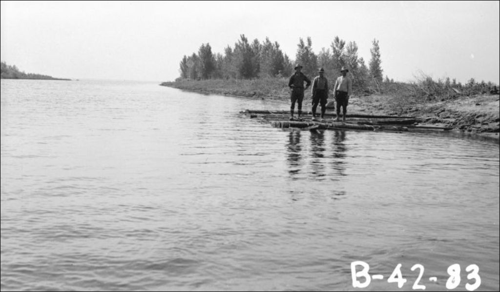 Rivière du Loup, comté de Maskinongé: radeau à l'embouchure de la rivière au Lac Saint-Pierre