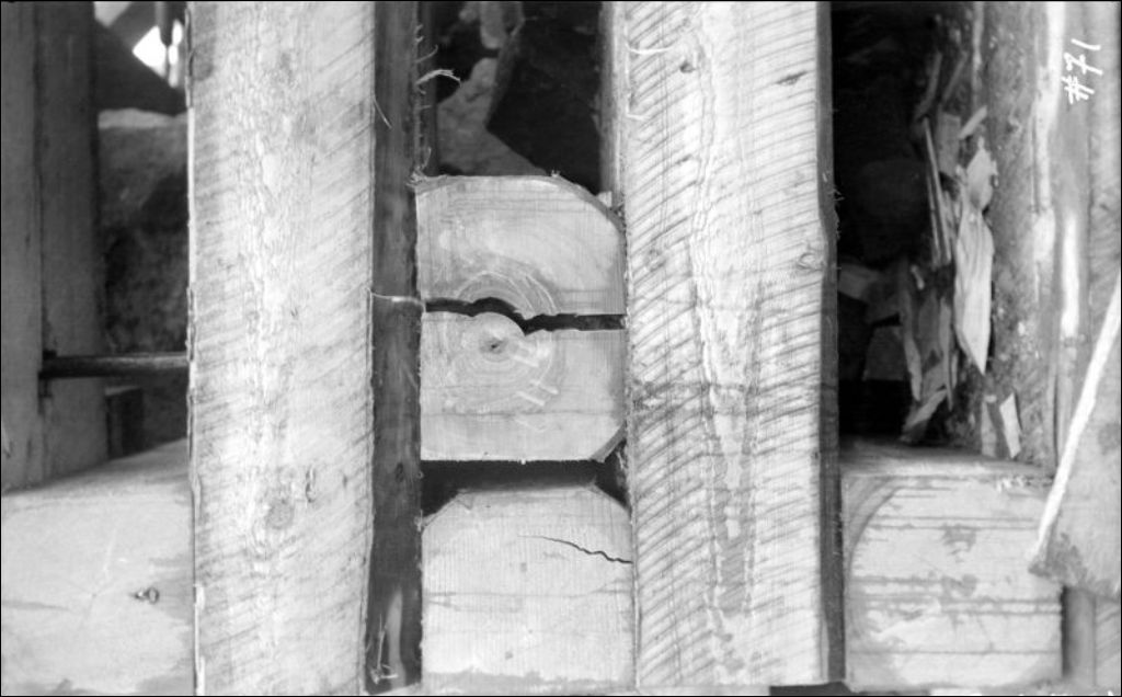 Lac Brûlé, construction du barrage: pièce d'ancrage dans la glissoire, 1919, Archives nationales à Québec, Fonds Ministère de l'Environnement et de la Lutte contre les changements climatiques, (03Q,E57,S44,SS1,D111,PB4-51), Photographe non identifié.