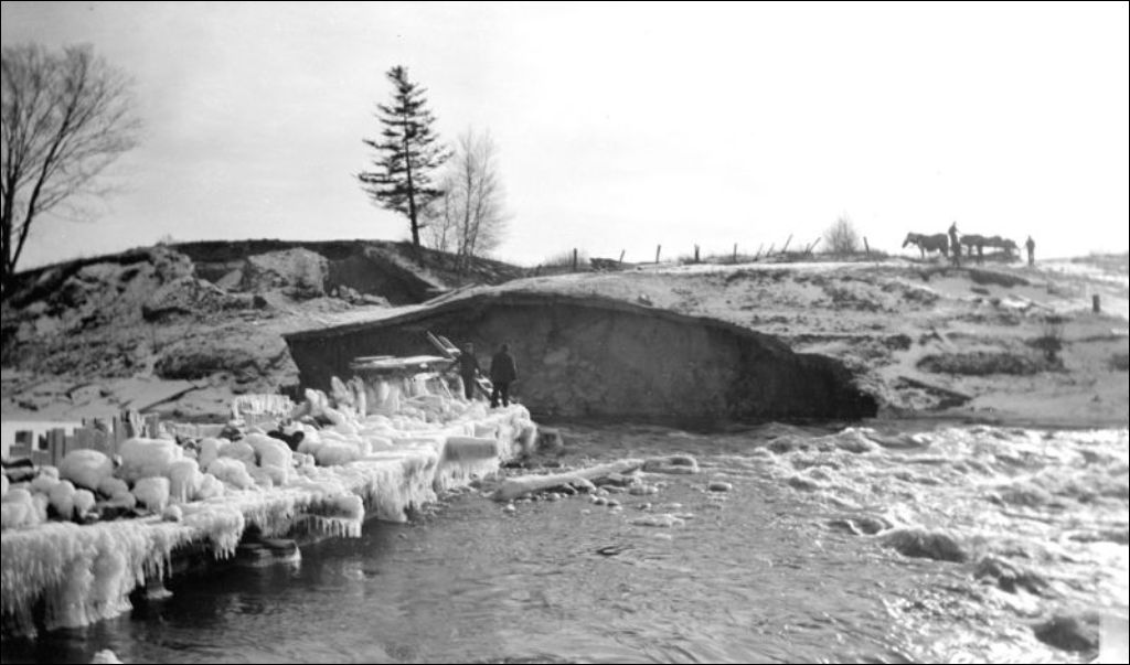 Rivière Noire: reconstruction du barrage à Upton, 1939, Archives nationales à Québec, Fonds Ministère de l'Environnement et de la Lutte contre les changements climatiques, (03Q,E57,S44,SS1,D172,PB47-4), Photographe non identifié.