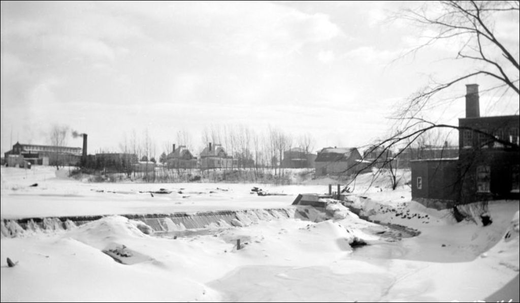 Rivière Moose: barrage à Acton Vale, 1939, Archives nationales à Québec, Fonds Ministère de l'Environnement et de la Lutte contre les changements climatiques, (03Q,E57,S44,SS1,D241,PB47-41), Photographe non identifié.