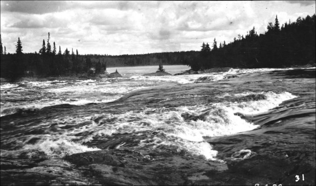 Rivière Bell: rapide Kiask, 1919, Archives nationales à Québec, Fonds Ministère de l'Environnement et de la Lutte contre les changements climatiques, (03Q,E57,S44,SS1,D117,PB4-88), Photographe non identifié.