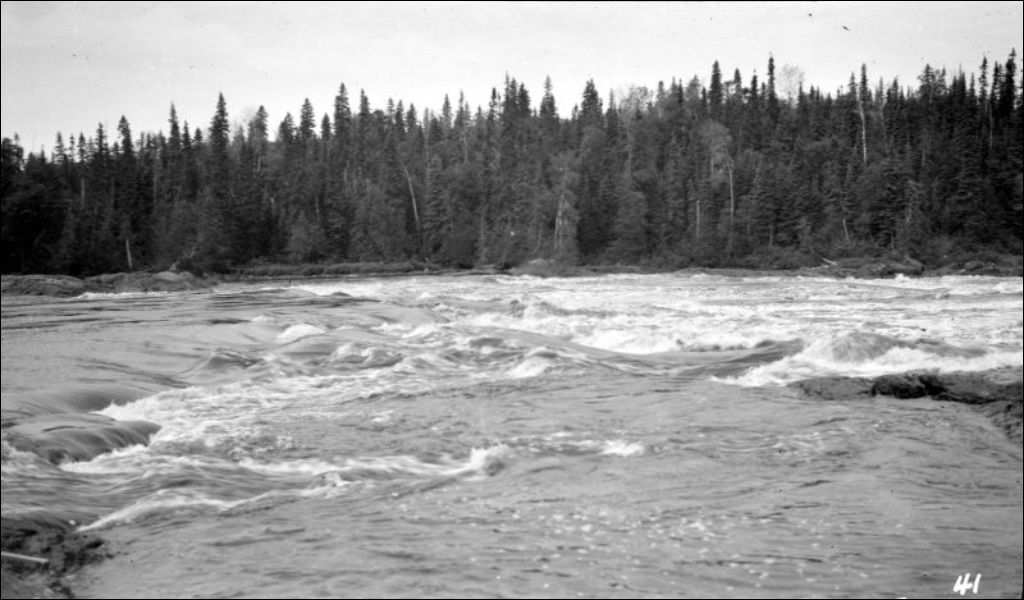 Rivière Bell: rapide Kiask, 1919, Archives nationales à Québec, Fonds Ministère de l'Environnement et de la Lutte contre les changements climatiques, (03Q,E57,S44,SS1,D117,PB4-90), Photographe non identifié.