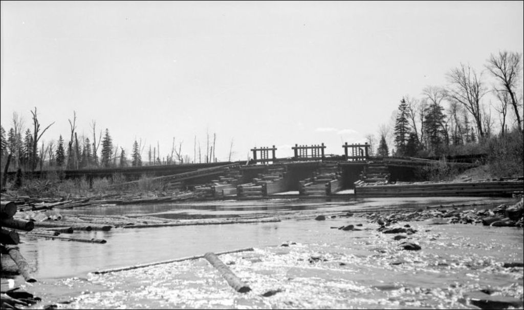 Rivière Mistigougèche: barrage du lac Misti, 1940, Archives nationales à Québec, Fonds Ministère de l'Environnement et de la Lutte contre les changements climatiques, (03Q,E57,S44,SS1,D249,PB49-23), Photographe non identifié.