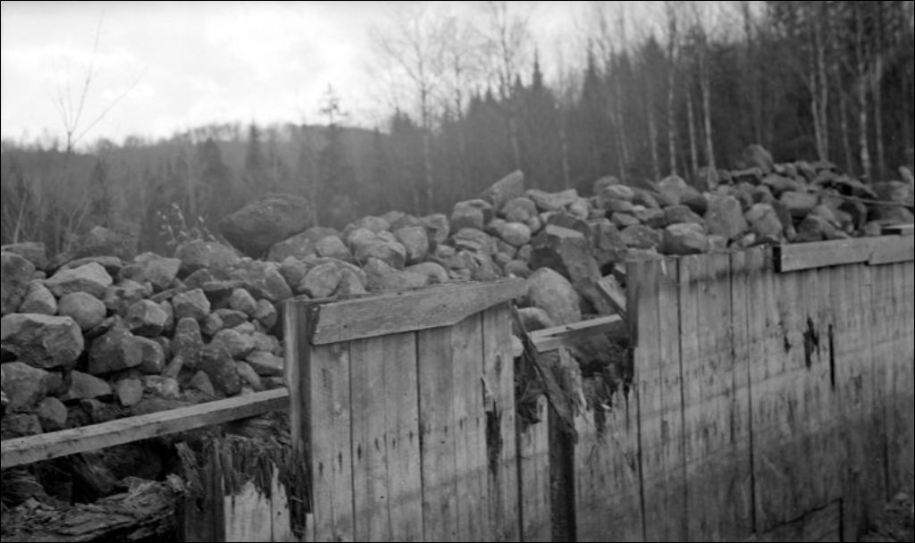 Rivière du Nord: reconstruction du barrage Bédini, 1942, Archives nationales à Québec, Fonds Ministère de l'Environnement et de la Lutte contre les changements climatiques, (03Q,E57,S44,SS1,D97,PB53A-97), Photographe non identifié.