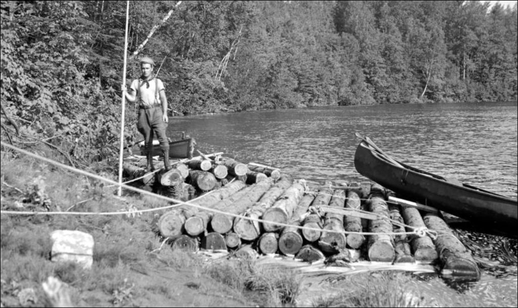 Radeau sur la rivière Batiscan, 1942, Archives nationales à Québec, Fonds Ministère de l'Environnement et de la Lutte contre les changements climatiques, (03Q,E57,S44,SS1,D193,PB54-60), Photographe non identifié.
