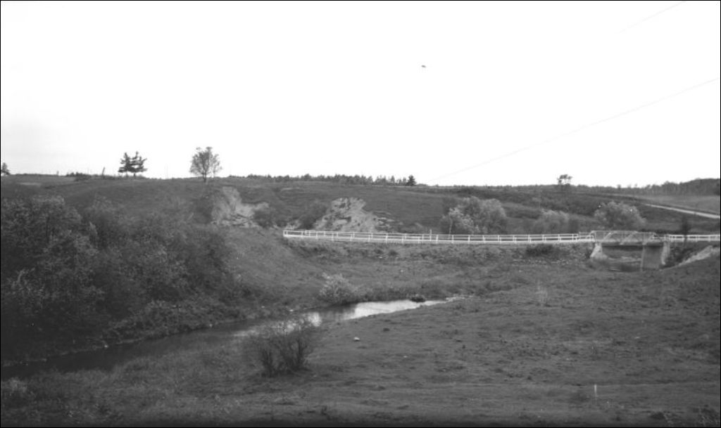 Rivière Pontgravé (bras ouest de la rivière Nicolet): érosion, 1943, Archives nationales à Québec, Fonds Ministère de l'Environnement et de la Lutte contre les changements climatiques, (03Q,E57,S44,SS1,D282,PB61-38), Photographe non identifié.