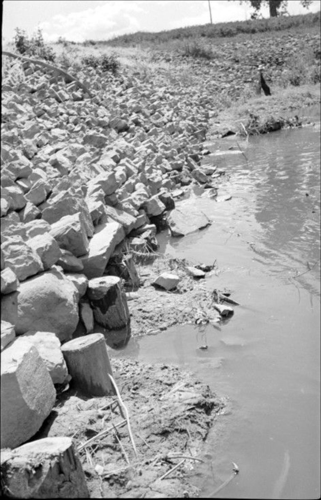 Rivière Chicot: érosion chez Arthur Denis, 1945, Archives nationales à Québec, Fonds Ministère de l'Environnement et de la Lutte contre les changements climatiques, (03Q,E57,S44,SS1,D274,PB63-74), Photographe non identifié.