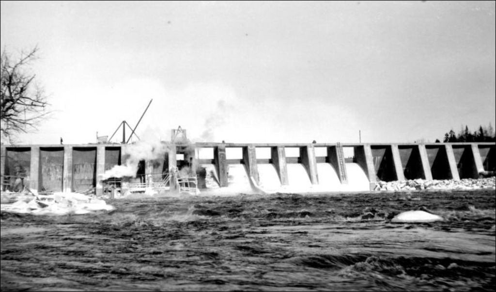 Lac Saint-François, construction du barrage Allard: Mur de diversion, 1919, Archives nationales à Québec, Fonds Ministère de l'Environnement et de la Lutte contre les changements climatiques, (03Q,E57,S44,SS1,D93,PB6-62), Photographe non identifié.
