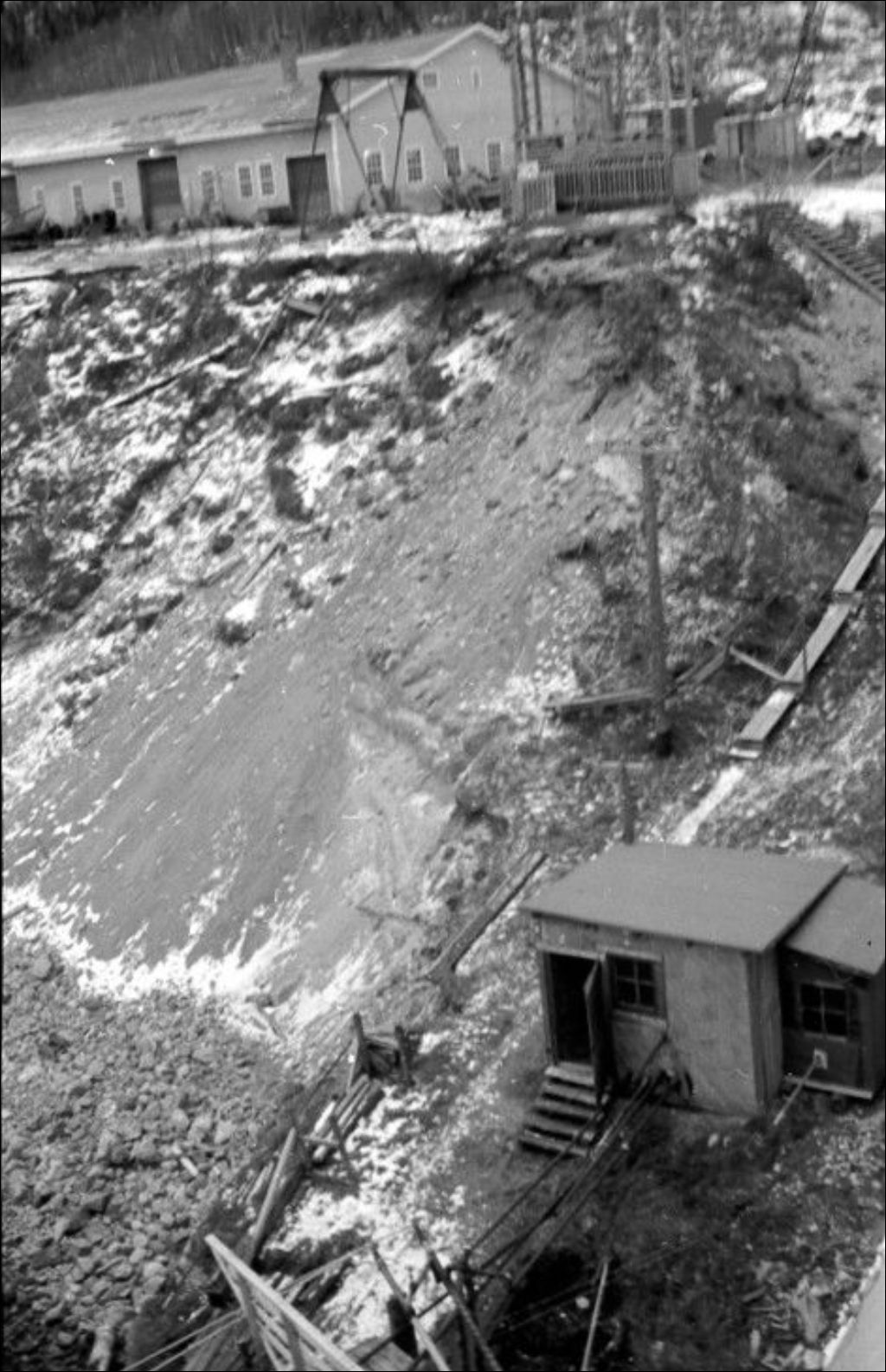 Érosion au barrage Gouin, 1948, Archives nationales à Québec, Fonds Ministère de l'Environnement et de la Lutte contre les changements climatiques, (03Q,E57,S44,SS1,D76,PB66-80), Photographe non identifié.