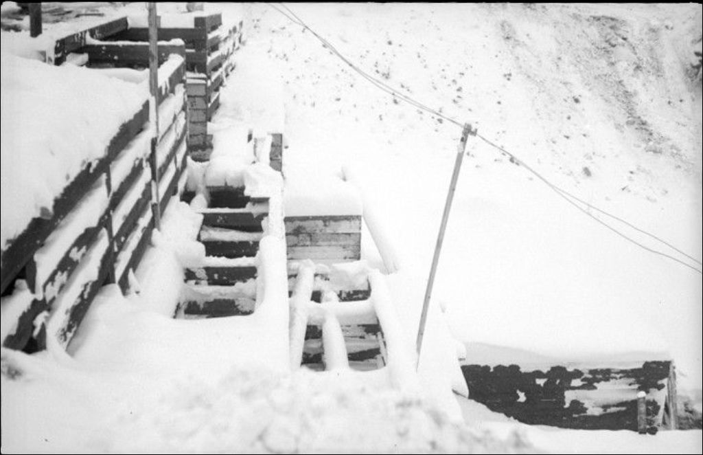 Ruisseau Page: barrage en construction, 1949, Archives nationales à Québec, Fonds Ministère de l'Environnement et de la Lutte contre les changements climatiques, (03Q,E57,S44,SS1,D152,PB67-83), Photographe non identifié.