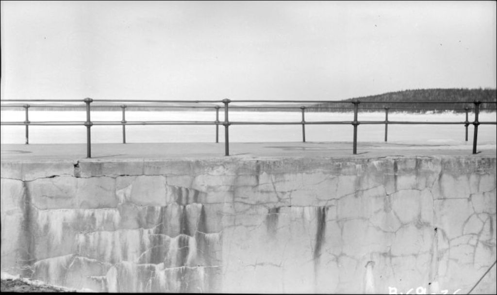 Barrage Gouin, 1949, Archives nationales à Québec, Fonds Ministère de l'Environnement et de la Lutte contre les changements climatiques, (03Q,E57,S44,SS1,D76,PB68-26), Photographe non identifié.