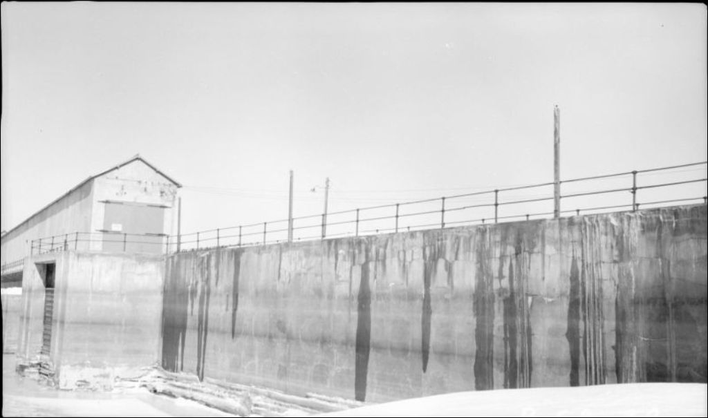 Barrage Gouin, 1949, Archives nationales à Québec, Fonds Ministère de l'Environnement et de la Lutte contre les changements climatiques, (03Q,E57,S44,SS1,D76,PB68-29), Photographe non identifié.