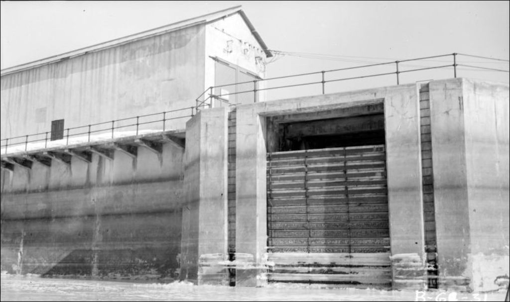 Barrage Gouin, 1949, Archives nationales à Québec, Fonds Ministère de l'Environnement et de la Lutte contre les changements climatiques, (03Q,E57,S44,SS1,D76,PB68-31), Photographe non identifié.
