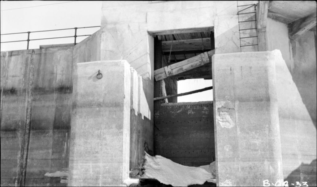 Barrage Gouin, 1949, Archives nationales à Québec, Fonds Ministère de l'Environnement et de la Lutte contre les changements climatiques, (03Q,E57,S44,SS1,D76,PB68-33), Photographe non identifié.