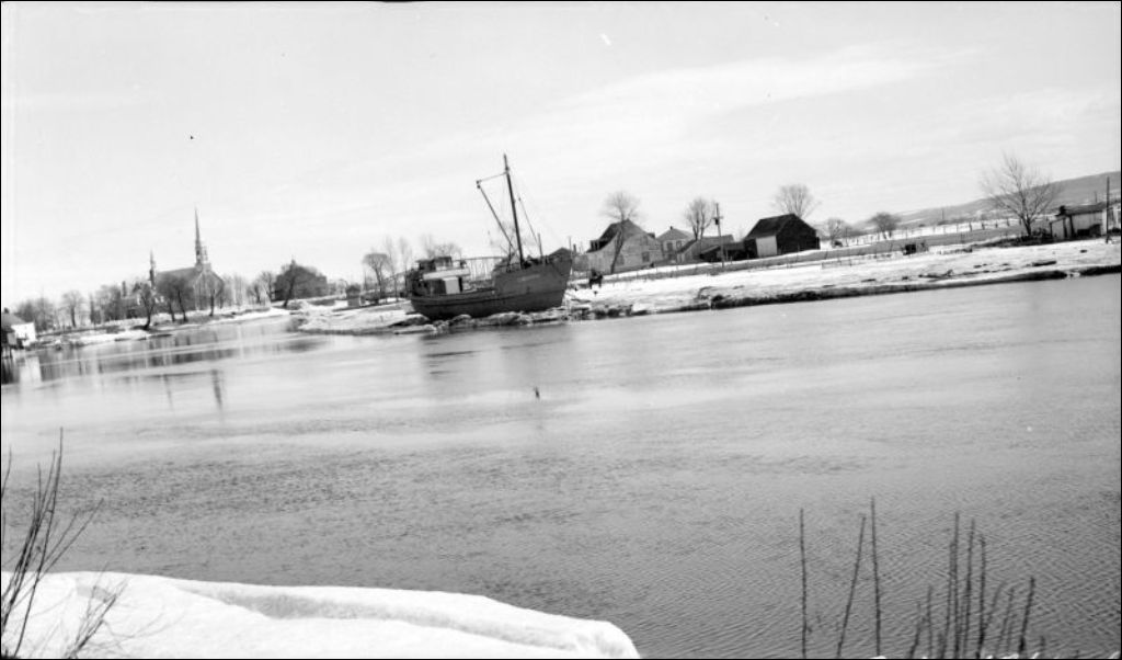 Rivière Ouelle: Rivière-Ouelle, 1952, Archives nationales à Québec, Fonds Ministère de l'Environnement et de la Lutte contre les changements climatiques, (03Q,E57,S44,SS1,D227,PB70-3), Photographe non identifié.