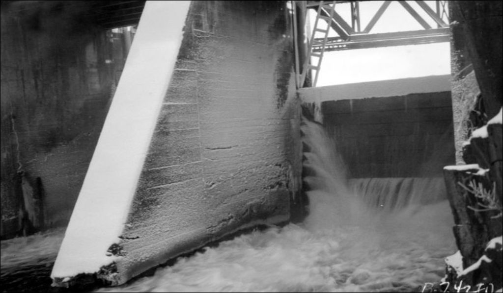 Lac Kipawa: barrage Kipawa, 1924, Archives nationales à Québec, Fonds Ministère de l'Environnement et de la Lutte contre les changements climatiques, (03Q,E57,S44,SS1,D121,PB7-42), Photographe non identifié.