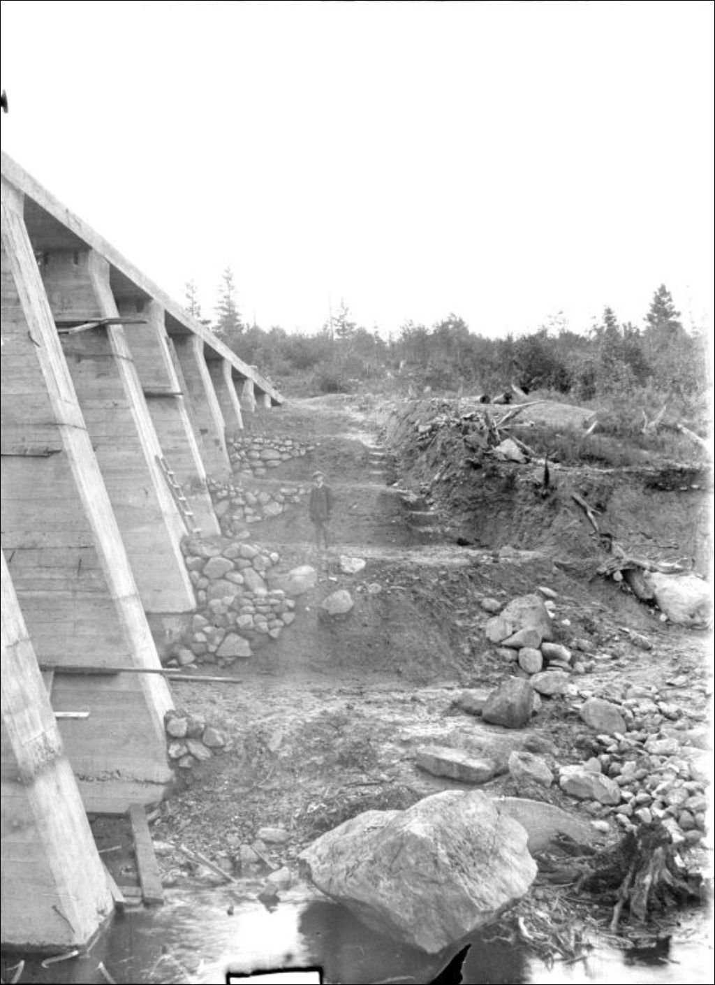 Rivière Saint-François, 1918, Archives nationales à Québec, Fonds Ministère de l'Environnement et de la Lutte contre les changements climatiques, (03Q,E57,S44,SS1,D96,PC1-50), Photographe non identifié.
