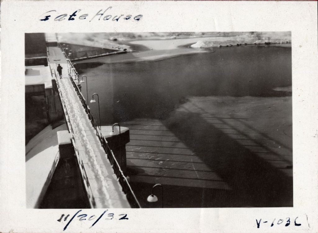 Rivière Batiscan - Gatehouse at Saint-Narcisse, 20 novembre 1932, Archives nationales à Québec, Fonds Ministère de l'Environnement et de la Lutte contre les changements climatiques, (03Q,E57,S44,SS1,D193,PY-1036), Photographe non identifié.
