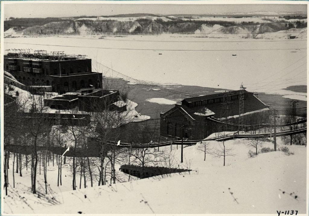 Rivière Saint-Maurice - Shawinigan Falls - Glace - Ice progress at Shawinigan Falls tailrace, 19 février 1935, Archives nationales à Québec, Fonds Ministère de l'Environnement et de la Lutte contre les changements climatiques, (03Q,E57,S44,SS1,D76,PY-1137), Photographe non identifié.