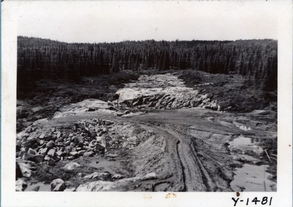 Rivière du Lièvre - Réservoir Mitchinamekus - Cut-off «B», 29 juillet 1941, Archives nationales à Québec, Fonds Ministère de l'Environnement et de la Lutte contre les changements climatiques, (03Q,E57,S44,SS1,D99,PY-1481), E. Larmarche.