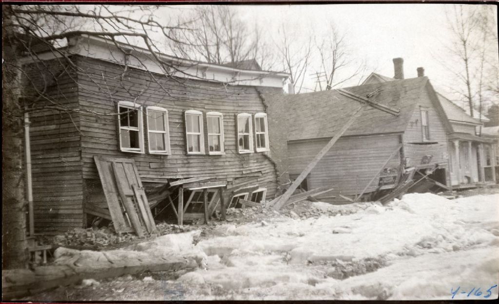 Rivière Chaudière - Débâcle à Saint-Georges, 1928, Archives nationales à Québec, Fonds Ministère de l'Environnement et de la Lutte contre les changements climatiques, (03Q,E57,S44,SS1,D83,PY-165), Photographe non identifié.
