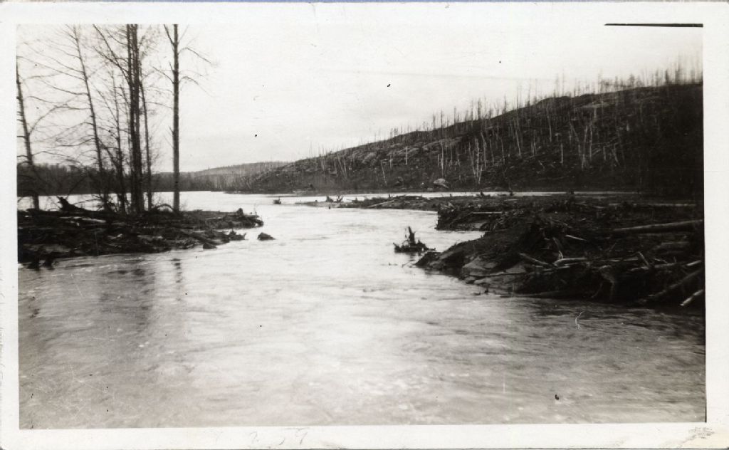 Ottawa supérieure - Lacs Berthemet & Dasserat - Lake Dasserat Diversion - Entrance to summit lake, Mai 1927, Archives nationales à Québec, Fonds Ministère de l'Environnement et de la Lutte contre les changements climatiques, (03Q,E57,S44,SS1,D283,PY-259), Photographe non identifié.