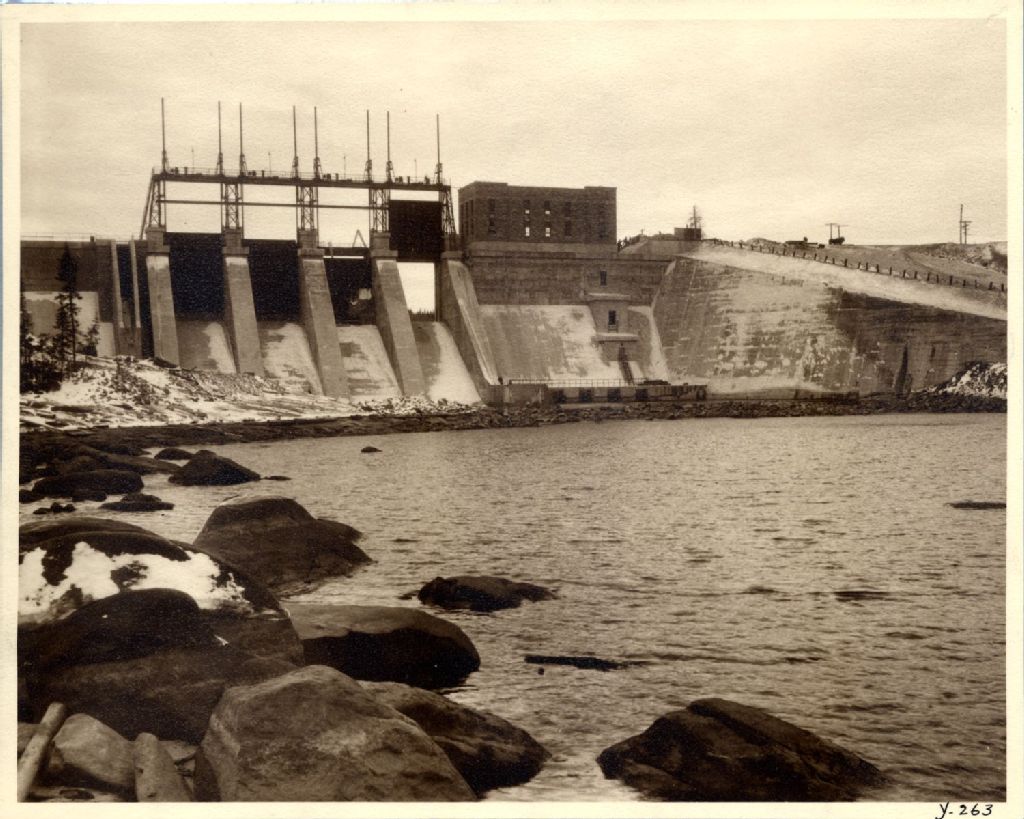 Rivière Matawin - Barrage - Réservoir (au rapide Taureau), 15 novembre 1930, Archives nationales à Québec, Fonds Ministère de l'Environnement et de la Lutte contre les changements climatiques, (03Q,E57,S44,SS1,D80,PY-263), S. W. & P. Co.