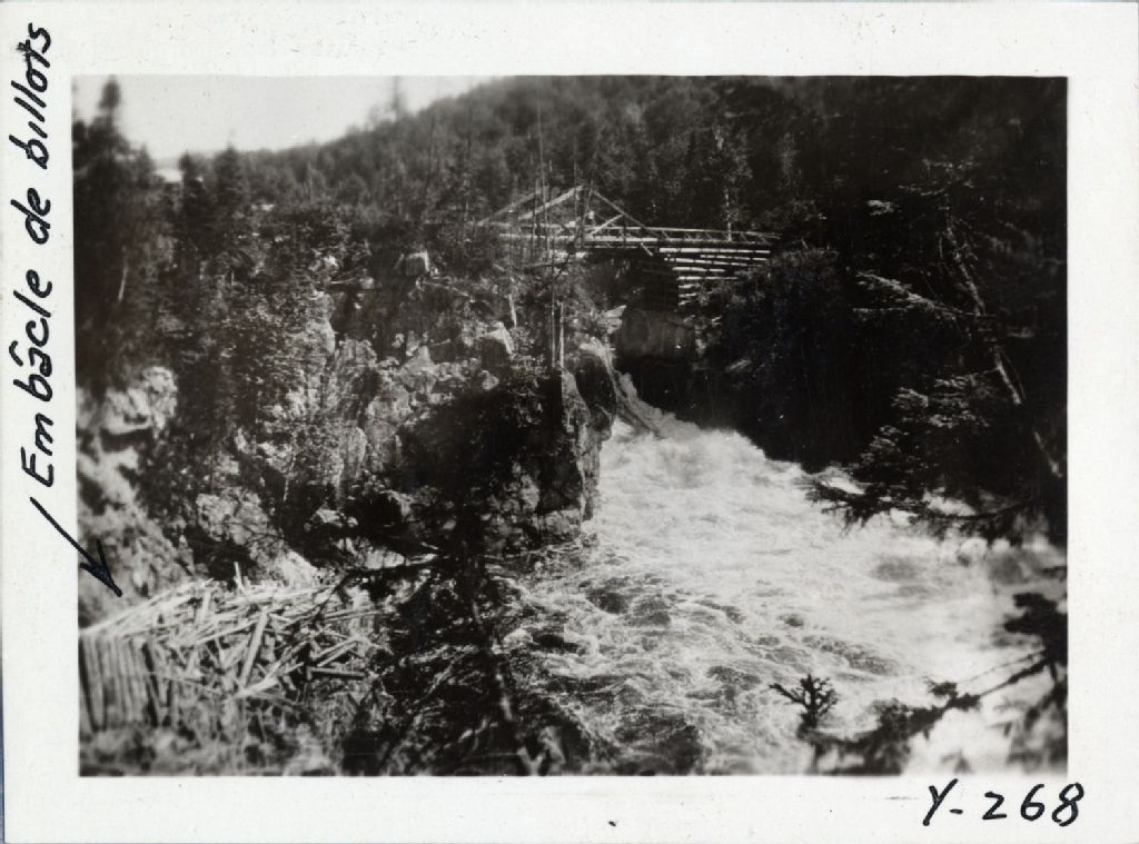 Rivière Shipshaw - Chute des Georges - Vue de la rivière immédiatement en aval du pont à chute des Georges, 1928, Archives nationales à Québec, Fonds Ministère de l'Environnement et de la Lutte contre les changements climatiques, (03Q,E57,S44,SS1,D157,PY-268), R. B.