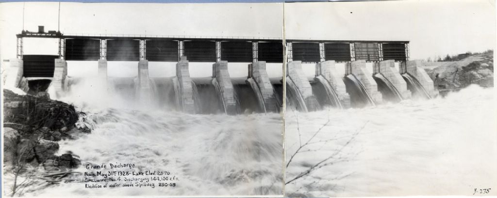 Rivière Saguenay - Inondation 1928 - Grande Décharge, Duke-Price Spillway no. 4, downstream view