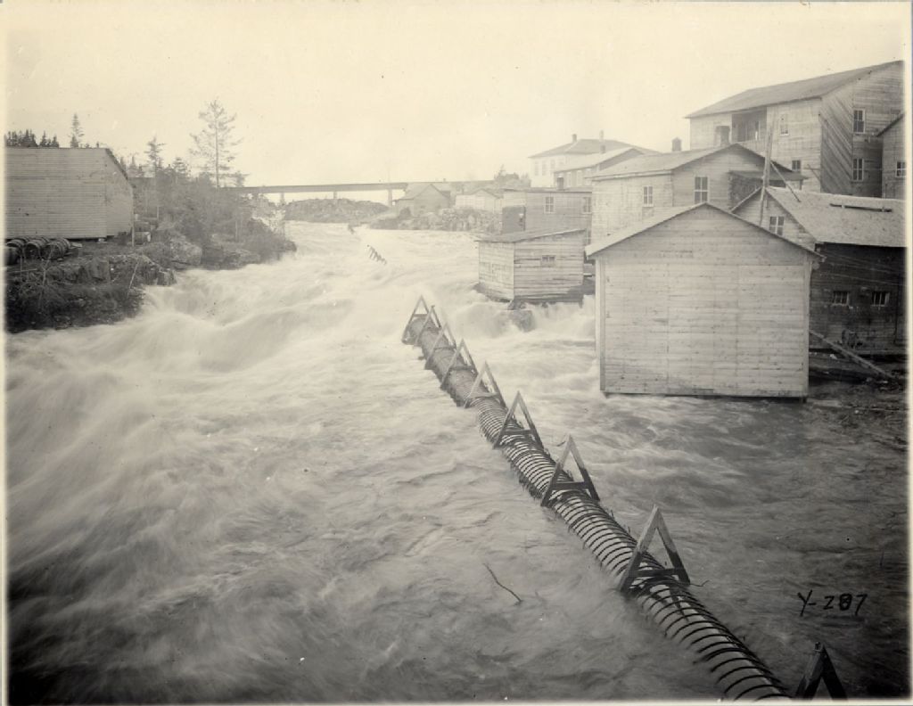 Rivière Saguenay - Inondation 1928 - Petite Décharge high water channel, view from highway bridge looking upstream