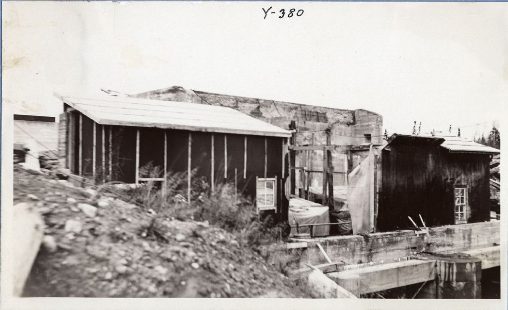 Rivière Saint-Maurice - Usine La Loutre - construction - Protection de la machinerie et appareils électriques - Vu de l'aval, 8 octobre 1931, Archives nationales à Québec, Fonds Ministère de l'Environnement et de la Lutte contre les changements climatiques, (03Q,E57,S44,SS1,D76,PY-380), Photographe non identifié.
