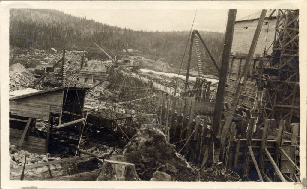Rivière Saint-Maurice - Barrage Gouin - Construction - [Vue rapprochée d'une partie des fondations]